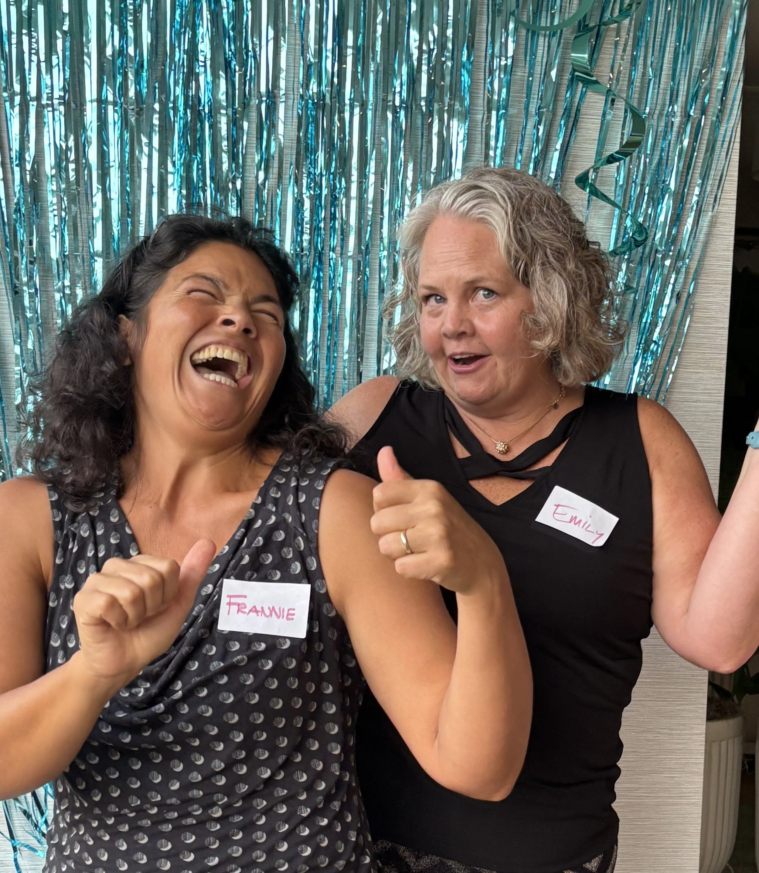 Image: My dear friend Emily and I at a dance party. I’m showing off my ‘thumbs up boogie’ move for the camera. Emily is whispering a hilarious observation.