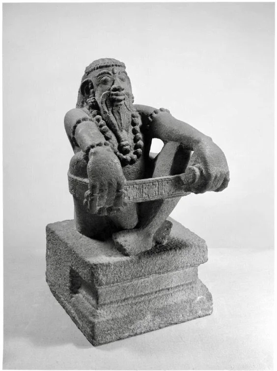 Image: Granite statue of an Ascetic, Rishi, or Yogi, using a strap in seated posture. Tamil Nadu, South India, circa 18th century. Image credit: Victoria and Albert Museum. https://collections.vam.ac.uk/item/O120563/sculpture-unknown/?carousel-image=2012FN0724